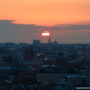 櫓のすぐ北側を川が流れています。ちょうど夕焼けが始まっていました。