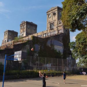 公園の端に位置する旧競馬場の一等馬見所は前回ご覧いただいた通りですが、その裏手にも少し飛び地になった園地があって高台から横浜山手の住宅街を見下ろせます。北西の丘越しにはランドマークタワーが顔を出しているのが見えました。