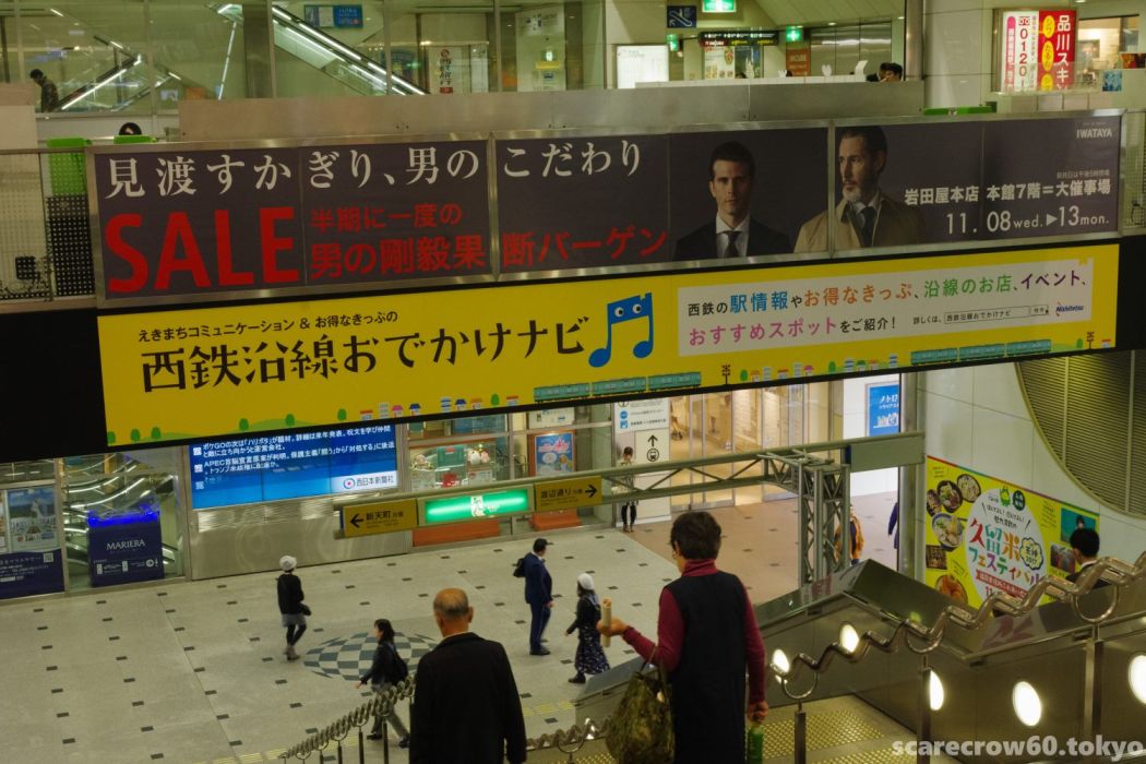 西鉄の福岡(天神)駅で電車を降りてエスカレータを下ってくる途中で目に入るこの広告。