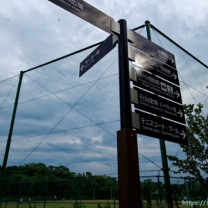 パンフォーカスが難しそうなら遠景はボカそうということで、自転車置き場で絞り開放F4で1枚。
