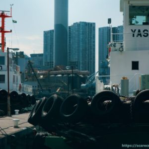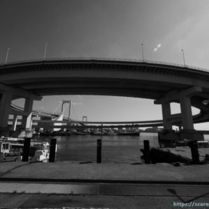 レインボーブリッジの橋脚の下、ゆりかもめの高架や近くのセメント工場のコンベヤなどのごちゃごちゃがちょっと面白いと感じて。
