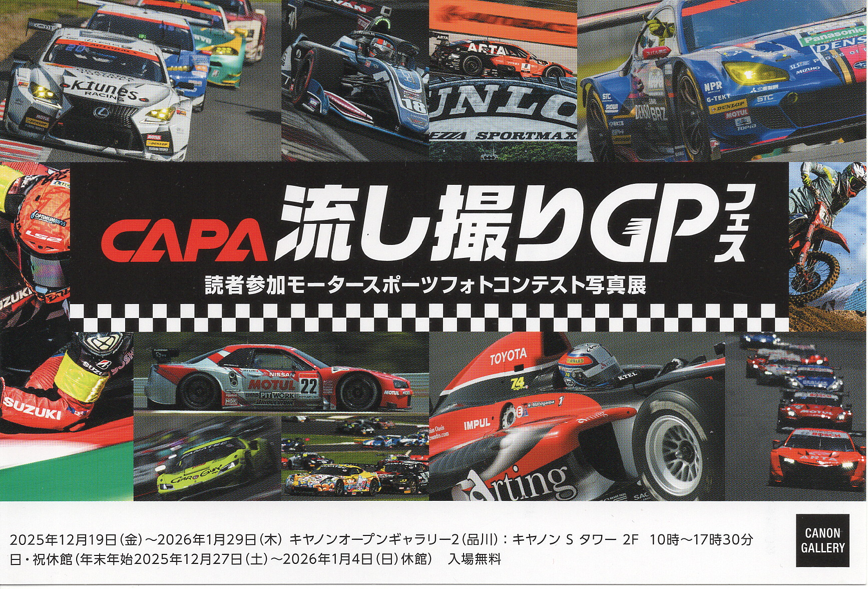 隣接会場では、アマチュアのカーレース写真愛好家の方々の間でのフォトコン上位作品展。会期は↑とかなり重なっています。