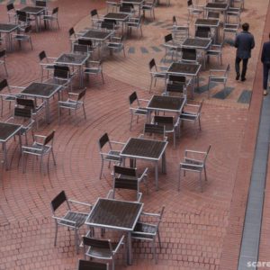 半地下の広場の池の端に腰かけて、FA31mmの絞り解放 F1.8
