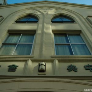新旧の建物の外観は、その多くがレンガ貼り・レンガ調のタイル貼りで統一されていて、落ち着いた雰囲気造りに一役かっています。夕陽を浴びた姿が美しい。
